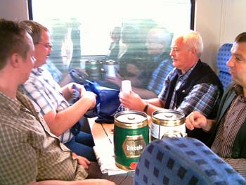 Der Zug kam Pünktlich und so stiegen wir ein und fanden selbstverständlich auch ein schönes Plätzchen wo wir alle gemeinsam sitzen konnten. Dann wurden die Utensilien für die Zugfahrt hervor gekramt. Gleich zu beginn gab es einen Sekt.