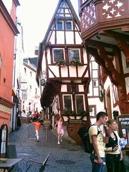 Zwischendurch machte ich noch ein Paar Bilder von dem Ort, mir fiel dabei auf, wie schief die alten Fachwerkgebäude doch waren und vor allem wie Schmal. Der Platz an dem wir saßen war schön und lebhaft und an den Geschäften konnte man feststellen das es einen Touristengegend ist. Ein schönes Türmchen nicht wahr?