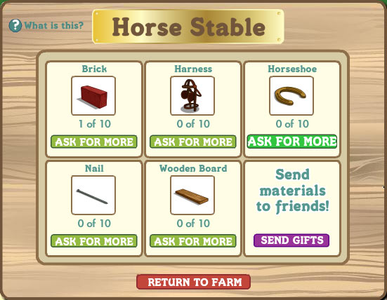 Facebook FarmVille, Der Pferdestall (horse stable)in Facebooks online Spiel FarmVille hilft uns, unserer Pferde besser und schneller zu ernten, gerade wenn wir sehr viele haben. Ebenso erhält man wenn man diesen erntet ab und an ein Fohlen, dann wenn man ein Wandering Stallin seinem Stall hinzufügt.