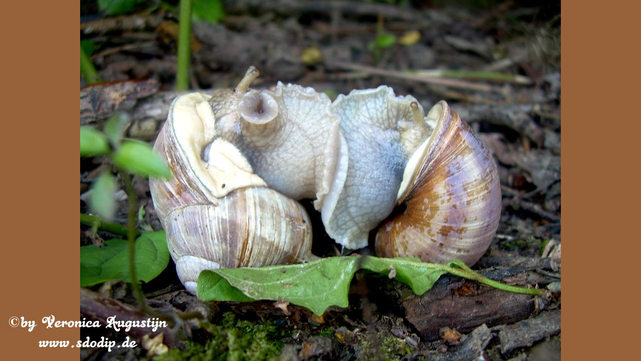 Im Gebüsch, einmal um die Ecke da waren sie zugange unsere Schnecken. So kuschelig eng aneinander, ob das wohl eine Paarung ist?