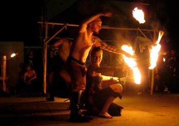 Auf dem Rückweg ins Camp liefen wir wieder über den Mittelalter Markt und konnten uns die Feuershow ansehen. Wir kamen gerade Rechtzeitig. Und sie passte noch einmal mehr zum Abschluss des Festivals, ich glaube sie haben eine kleine Geschichte dargestellt. Was man mit Feuer und Bewegungen alles ausdrücken kann. Sehr viel Ausdruck zu den Trommelschlägen. Ja das war schön. Noch ein klein wenig irrten wir umher, setzten uns noch zu der Gruppe und ließen uns dann im Zelt nieder. Der Nächste Tag würde sehr anstrengend werden. Gutes nächtle.